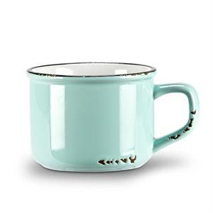 Add some rustic style to your mornings with this Enamel Look Cappuccino Mug in Mint. Crafted out of stoneware with a cool, enamel-look glaze, this wide-mouthed cappuccino mug features a black rim with white interior to complement its bright mint exterior and charming, antique-style details. Also available in other colours.