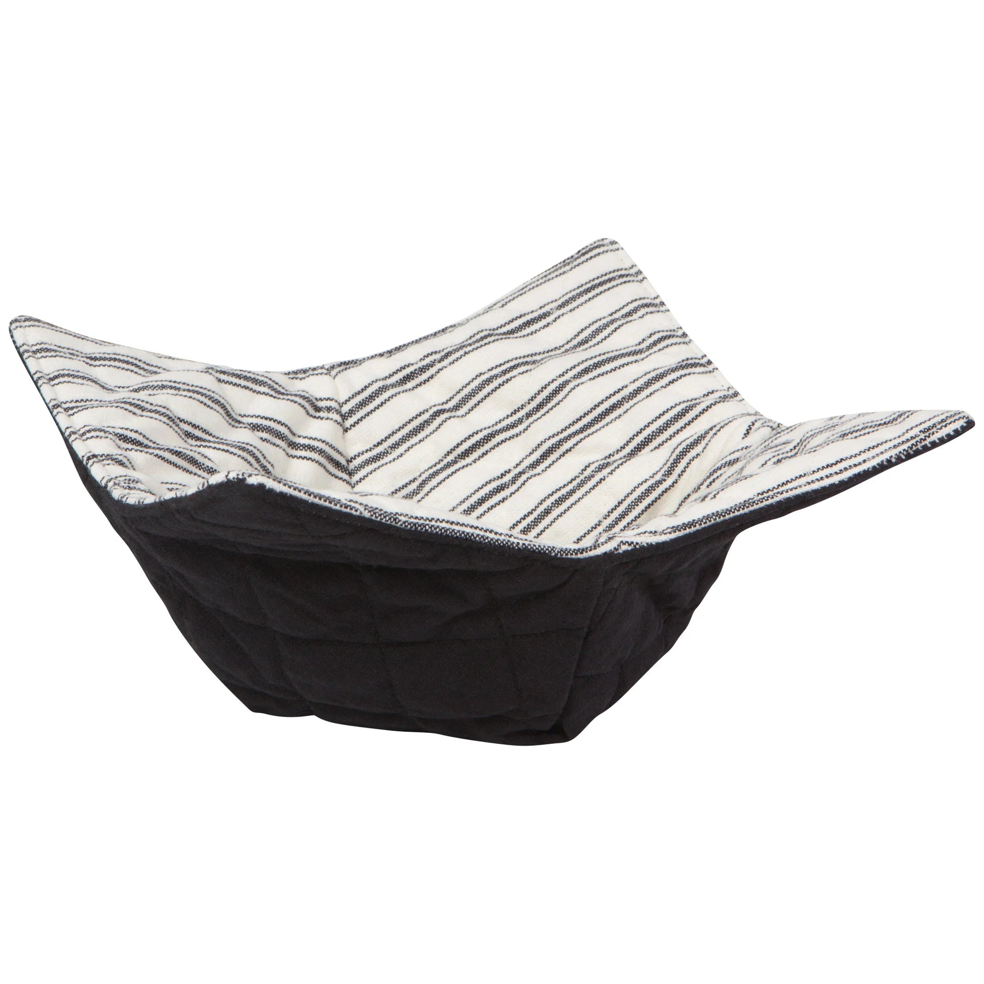 Cradle a warm bowl of morning oatmeal or afternoon soup safely in your hands with this Ticking Stripe quilted bowl cozy and white soup bowl. The soup bowl has two handles for easy carrying and fits neatly in the bowl cozy.